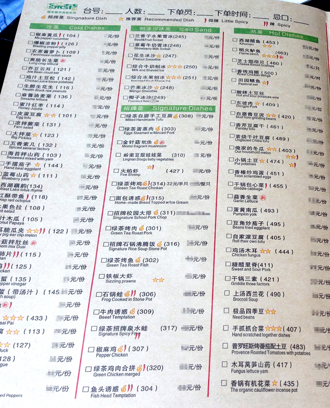 在綠茶的菜單上,你會發(fā)現(xiàn)部分菜品名的后面標(biāo)有紅色的大拇指、星星、辣椒等顯眼的標(biāo)記。其中,辣椒代表著菜品的辣度,大拇指代表綠茶餐廳的招牌菜,星星則代表餐廳推薦菜,星星越多也就代表這道菜在顧客當(dāng)中的受歡迎程度越高。