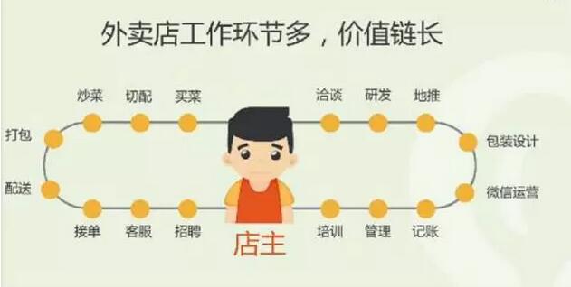 3、餐飲人普遍缺少高效、穩(wěn)定的供應(yīng)鏈——需要管理的流程過多過雜,包含切配、買菜、洽談、研發(fā)、地推、記賬、管理、培訓、招聘、客服、接單、配送等十幾個環(huán)節(jié)。