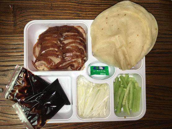 比如京味齋的招牌菜烤鴨,為了讓烤鴨的黃瓜條、蔥絲、荷葉餅、甜面醬都分開擺放,京味齋自己設(shè)計(jì)了一款多格烤鴨專用餐盒,滿足了烤鴨外賣對口感和顏值的雙重需要。